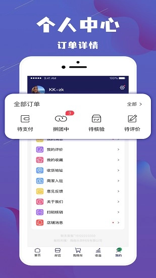 1.支持进行相关的拼团畅享更多的优惠体验,能够进行查看全部的订单消息内容快速便捷收货地址以及意见反馈。