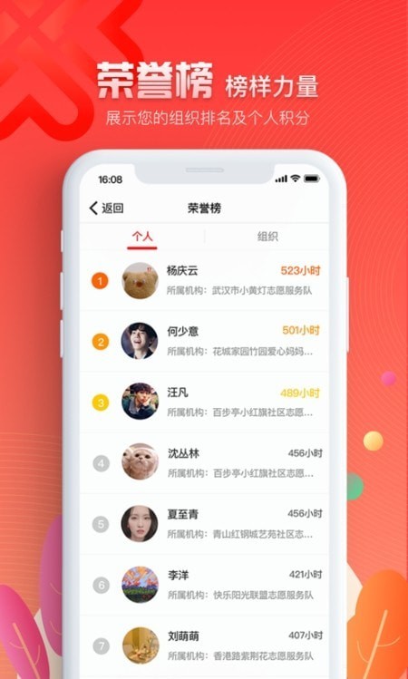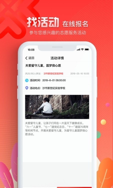 在app上了解最新的志愿者活动,轻松找到自己的志愿者团体和组织,参与到各种社区暖心服务项目中