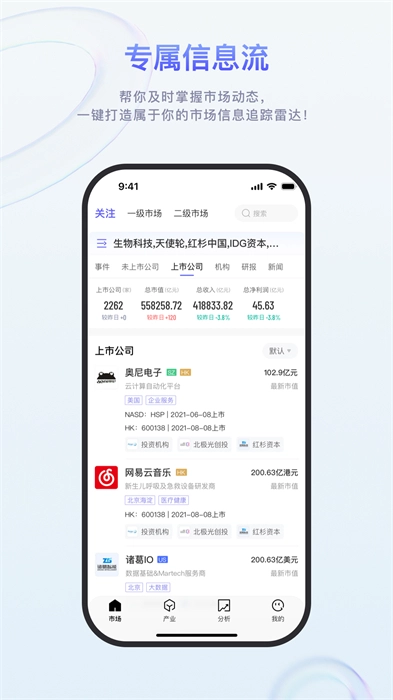 2、【关注】按产业或行业,一键式定制专属信息流;