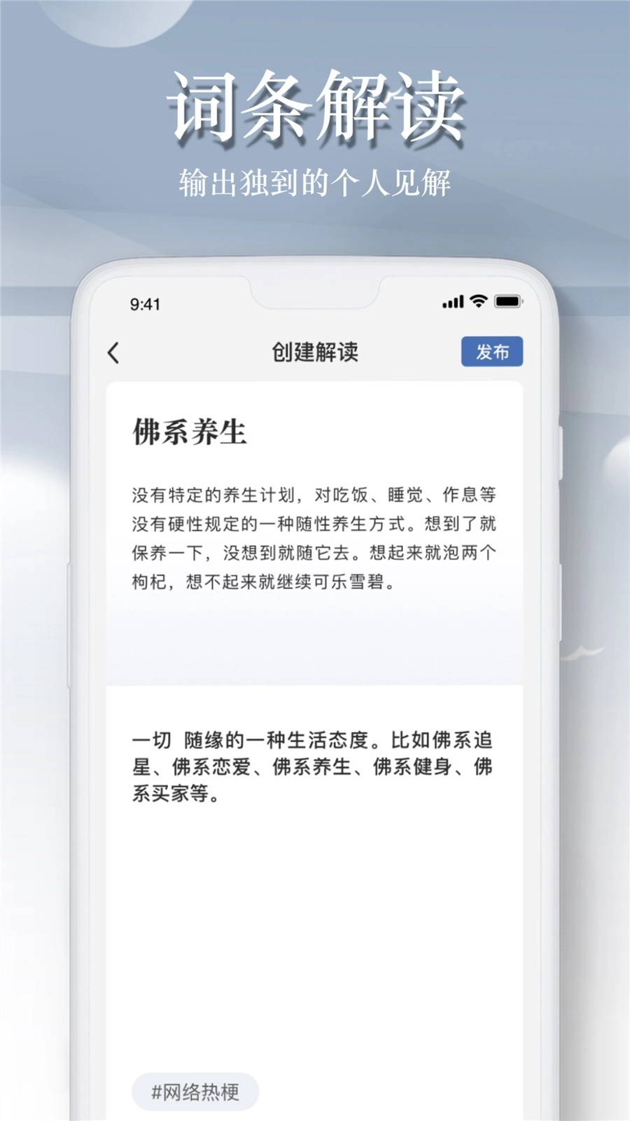 1.词条解读,输出独特的个人观点,实时了解更多内容;