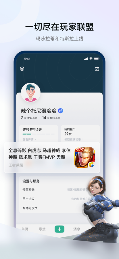 一起玩联盟是一款非常好用的游戏玩家交流平台,软件中包含了非常丰富的游戏内容,汇集超多的游戏玩家,大家可以在这里发起悬赏,让大神带你飞,享受更加精彩刺激的游戏体验,很多种不同的游戏玩家都在这里,可以一键发布消息,轻松找到更多的游戏好友和大神,一起玩游戏,更有乐趣,快来下载吧~