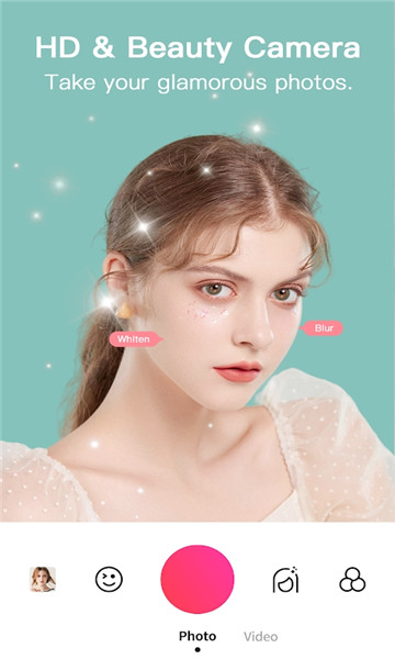 4. 美颜自拍相机,高清拍摄,可爱贴纸,100余款梦幻滤镜,自然美颜技法,多重剪辑技法。