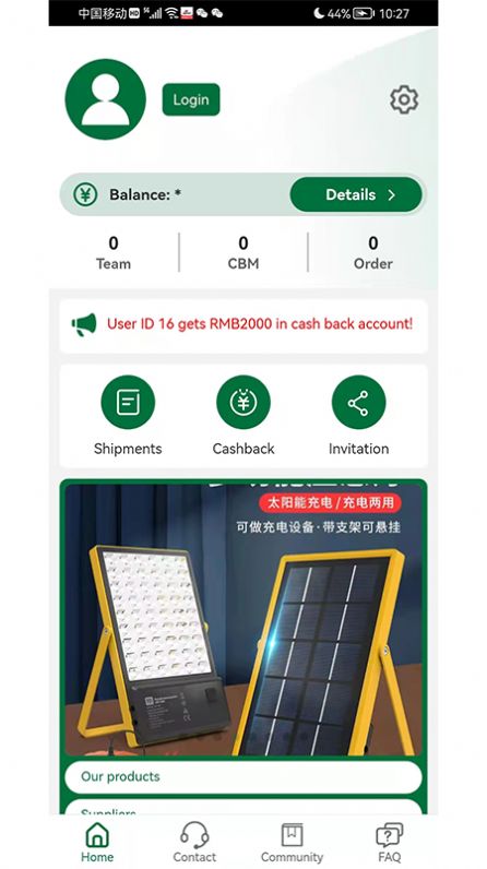 2、当您在我们公司的应用程序上注册为用户时,您可以从自己的发货中获得红包返还设施。