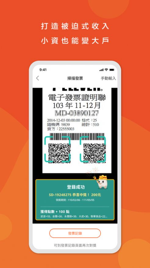 3.集点+兑奖+记帐,All In One发票增值APP 除了集点赚消费回馈,还有发票自动兑奖功能。