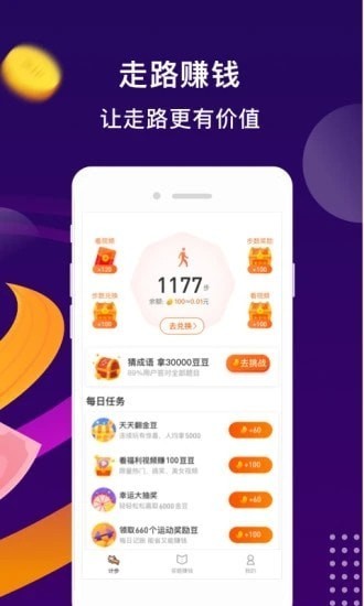喜乐走app是一款非常使用可以赚钱的软件,同步微信的走路赚钱,快来试试吧!