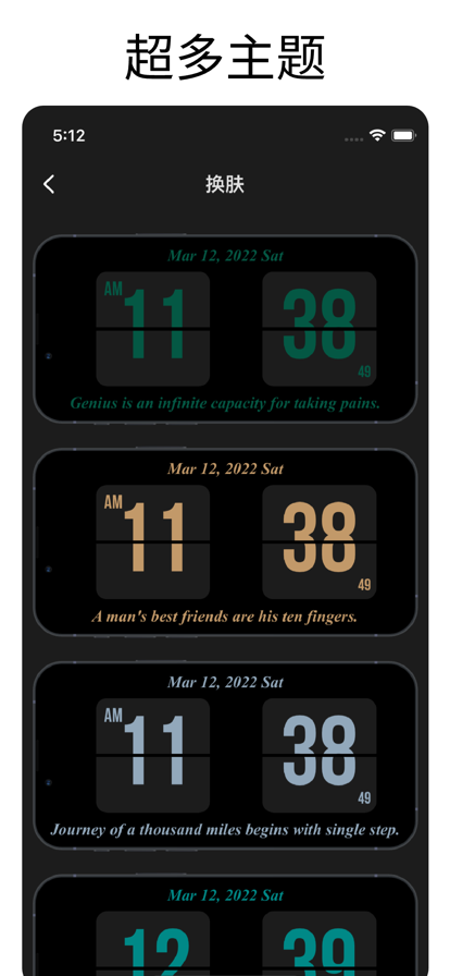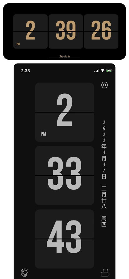 翻转时钟是一款功能非常强强大的手机时钟软件,软件中采用了动态翻页的效果,可以给大家各种炫酷精准的时钟体验,而且大家可以去自定义各种计时器,帮助你更好的记录自己的时间,同时软件还会给大家带去不同的颜色皮肤,可以自由的去更换时钟的样子,作为屏保也非常炫酷,快来下载吧~