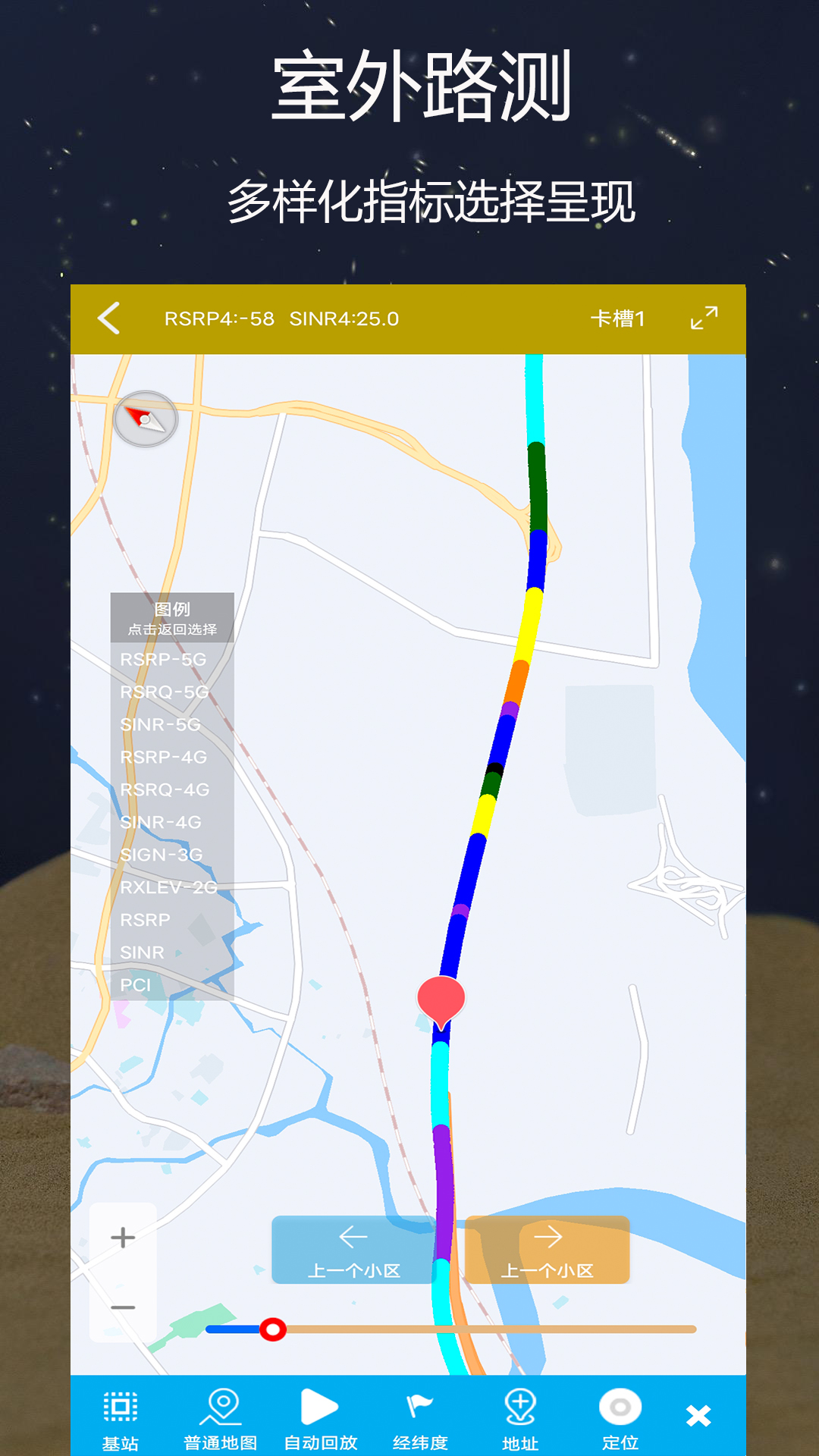 3、轨迹(地铁)测试、语音测试、信号相册、指南针(方位角)、水平仪(下倾角)等;