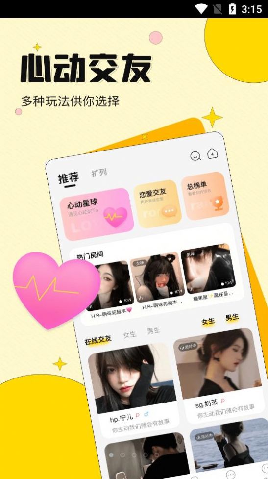 有趣的交友软件,给大家带来了各种受欢迎的交友方式,大家可以在线语音聊天,直接在线聊天很有趣,快来下载吧~