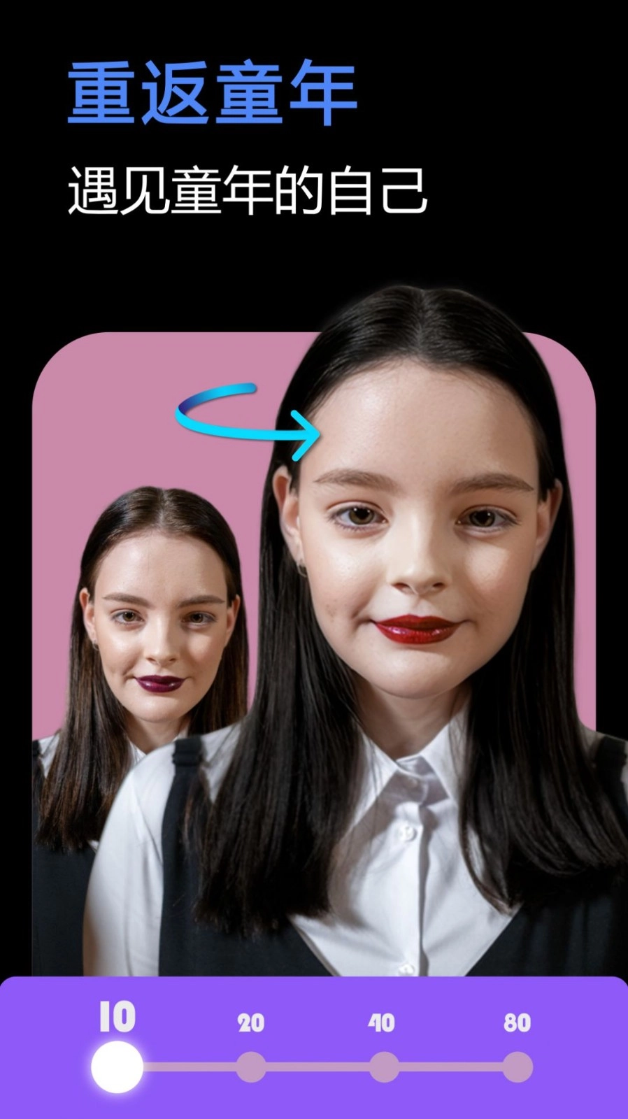 2、【时光相机】一张照片可以看到自己年轻或者年老后的样子。