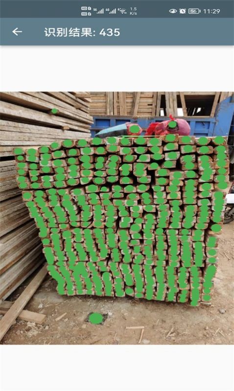 3、自定义框选框木材的区域进行识别,会生成绿点来进行数量的扫描。