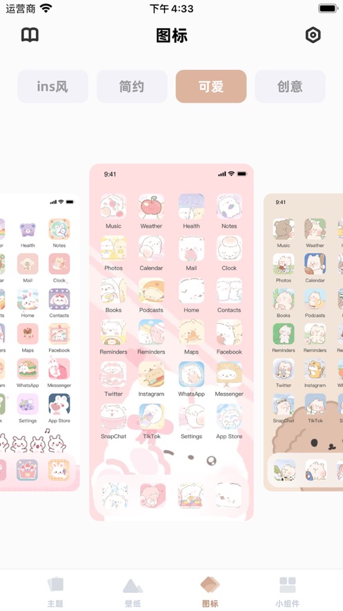 手机桌面整理是一款很实用的手机桌面美化软件,这款软件可以让大家轻松的整理自己的手机桌面,各种各样的精美图标都可以来轻松的选择,让大家的手机桌面图标可以统一画风,超多的主题内容可以选择,这里有ins风、简约风、可爱风等等多种精美的图标可以选择,一键切换手机图标超级方便,快来下载吧~
