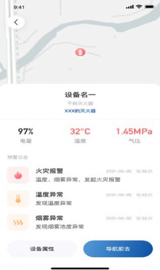 1、通过将用户与灭火器上的智能设备关联,用户可以远程查看灭火位置和灭火器的状态参数。