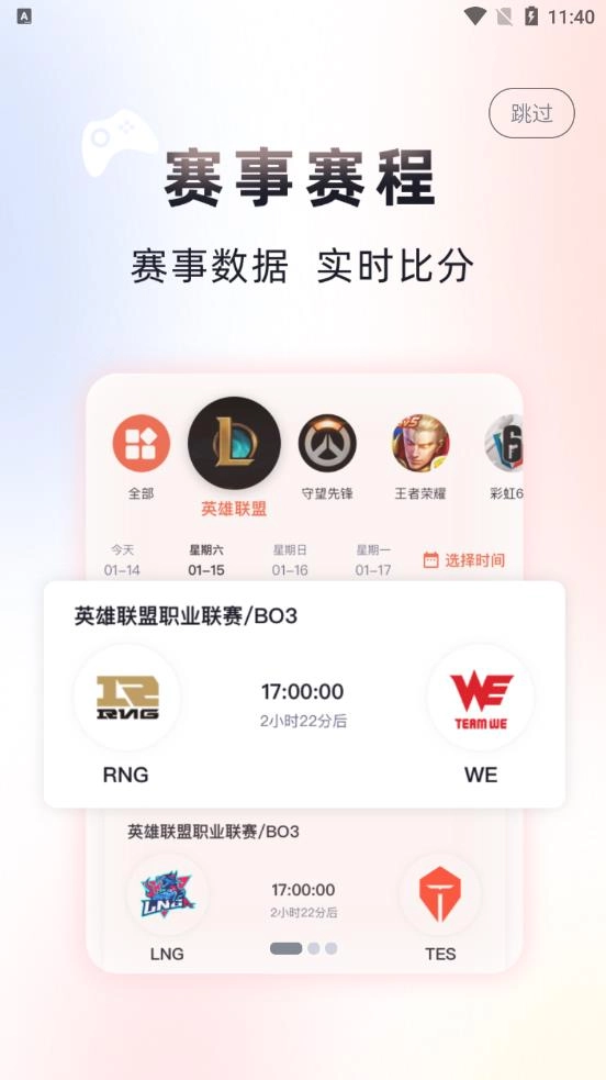 一个非常有趣的手机电竞游戏信息APP,涵盖多种电竞赛事、赛事直播、赛事数据等