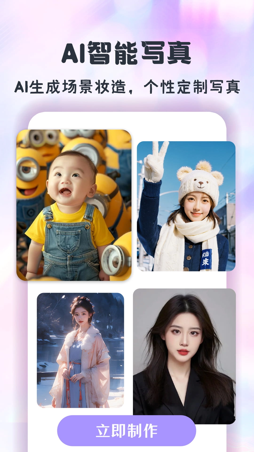 3、杂志风、ins风、日韩风、可盐、可甜多种美妆任你选择!更有百变姿势,一键拍照姿势+美妆!