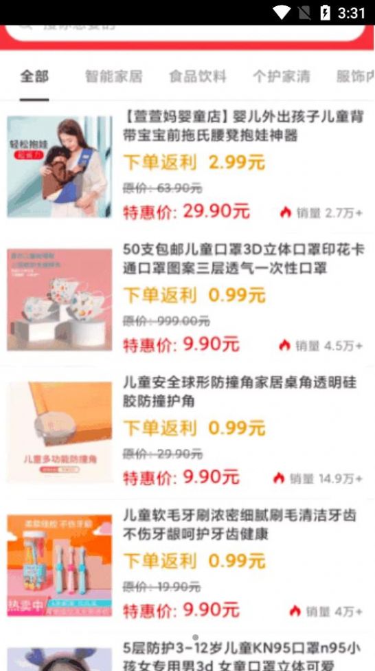 一款很实惠的购物商城,每天推送各种超值优惠价格商品可以去选购,给你最划算的购物体验,而且还有下单返利可以了,快来下载吧~