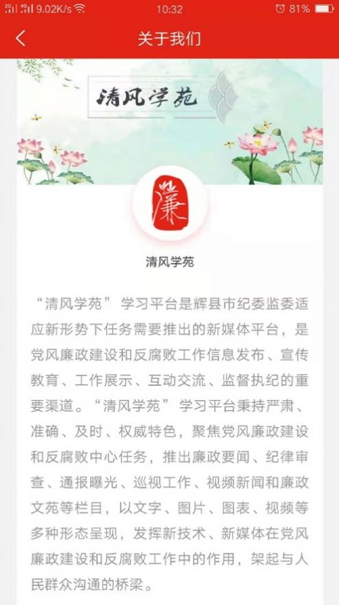 清风学苑app是一款党风廉政建设和反腐败工作信息发布、宣传教育、工作展示、互动交流、监督执纪的重要渠道。