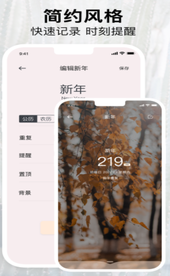 3、倒计时陪伴你度过每一个重要的日子,帮助你记录每天最重要的时刻。