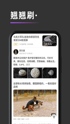 翘翘刷是一款精彩的刷短视频的软件,这里每天都会更新各种有趣好玩的视频内容,大家可以随时来刷视频,短视频内容涵盖了很丰富的领域,生活、体育、舞蹈、歌唱、工作、知识科普等等非常的丰富,可以给大家很多生活的乐趣,同时大家也可以来发布自己录制的短视频,分享自己的生活,快来下载吧~