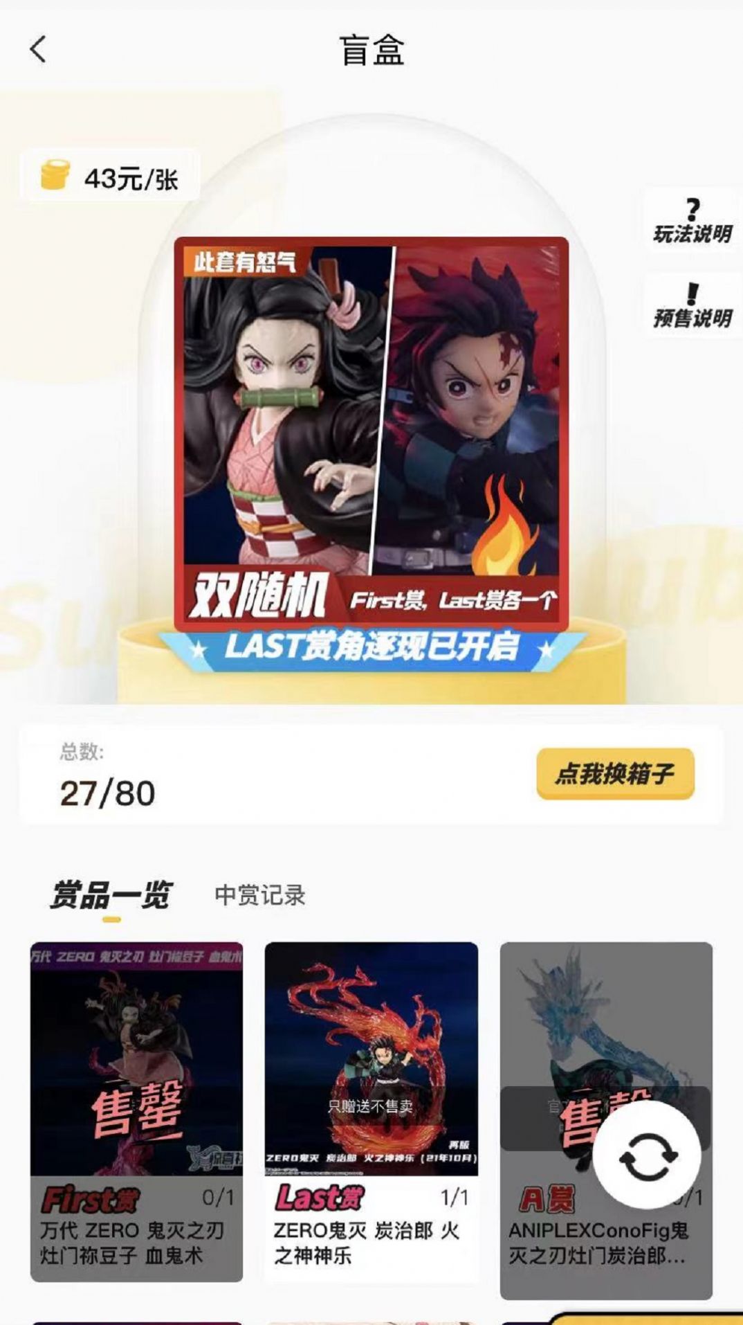 1、这里采用了自主的盲盒开启模式,所有的商品都将以抽盲盒的形式来售卖。