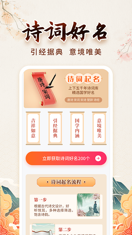 2.五行吉名、三才五格、古典诗词,轻松帮助用户在拥有美好寓意名字的同时增添更多文艺气息。