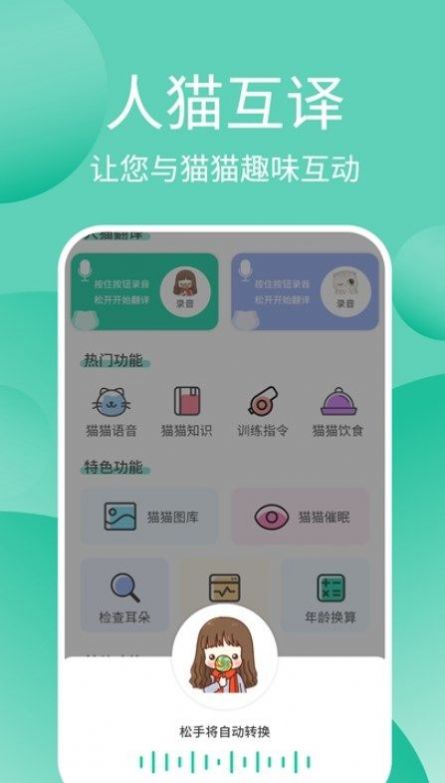2、拥有专业的配套猫语为猫咪提供,让猫咪听就懂。