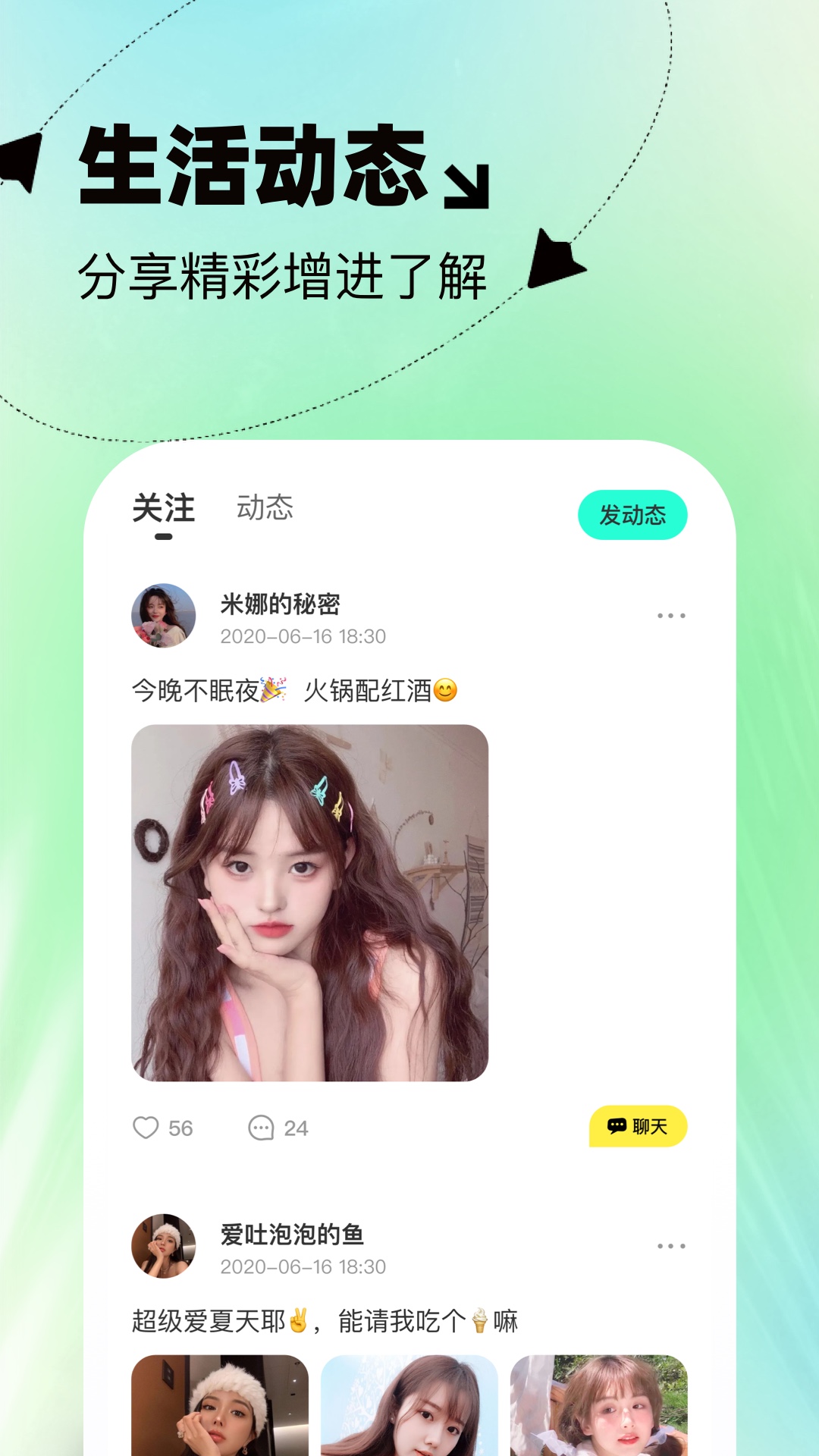 2.动态广场分享超多内容,一键分享自己喜欢的内容,将自己喜欢的内容一键分享上去;