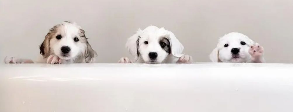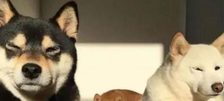 1这个动图是非常有趣的,三只小狗做着一样的动作。