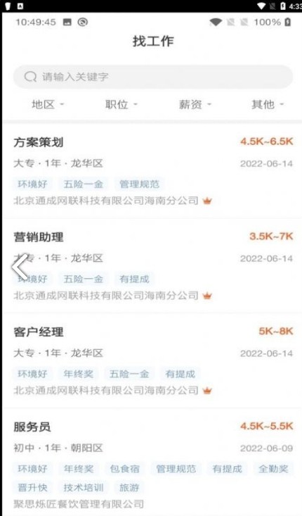 1.这里所有的岗位都是经过平台地审核的,用户可以放心的进行查看。