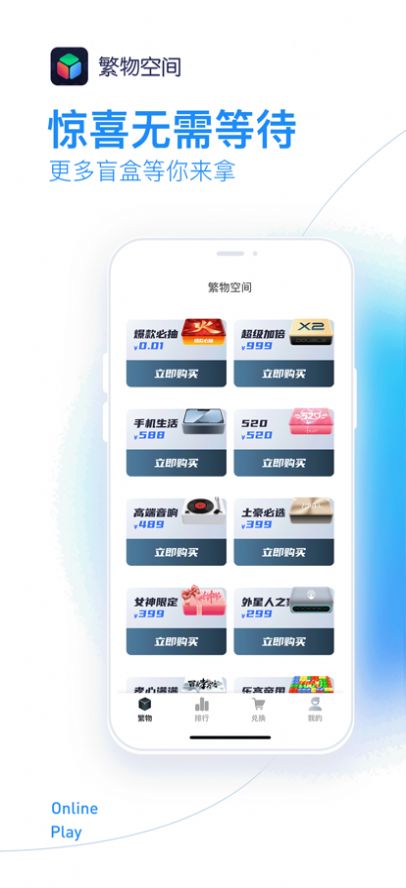 繁物空间APP,一款专为盲盒爱好者服务在线抽盲盒APP。超高的爆率让您遇见各大品牌好物!