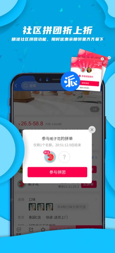 2、社区拼团折上折,精准社区拼团功能,限时优惠亲朋邻里齐齐拿下;