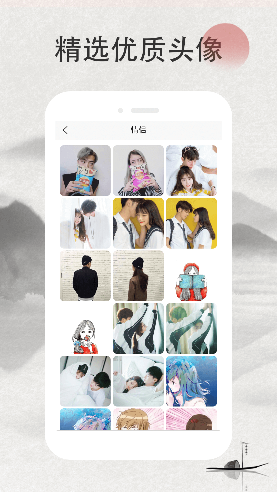 情侣头像记这是一款资源丰富的手机头像资源库,这里汇聚了大量不同风格的优质头像。用户可以在这里根据不同的需求进行在线搜索,知找到自己的喜欢头像进行下载,所有的头像都是可以免费下载使用。用户可以在这里每天都是使用不一样的头像,都是可以无水印下载的。