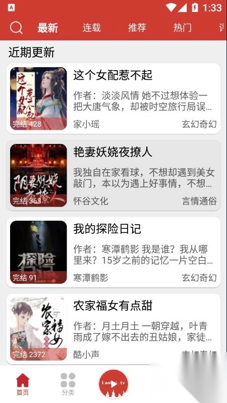 3.所有的小说都进行了详细的分类,方便用户进行快速的寻找。