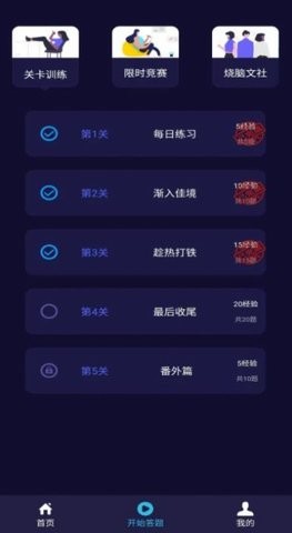 2、有关卡训练、限时竞赛以及烧脑文社等多种功能都为大家全面的分享