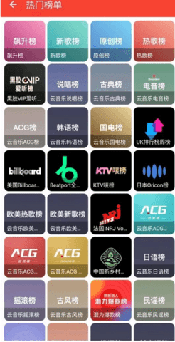 2.这里有着很多不同的音乐榜单,用户可以选择自己喜欢的进行收听关注