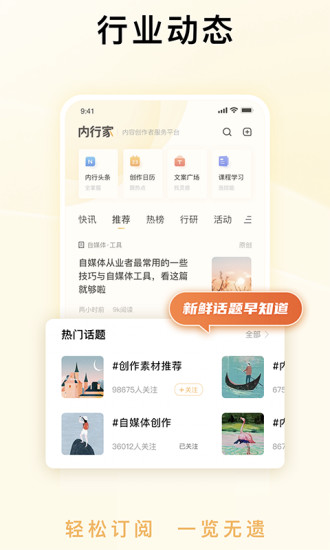 2、专为内容创作用户提供各种服务的手机软件带给用户更多服务的便捷,这里有丰富全面的资讯都是随时去进行获取。