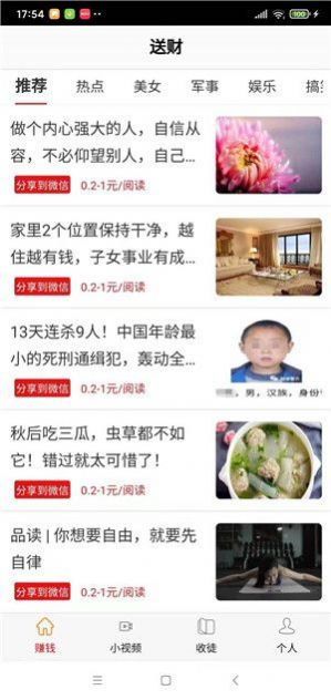 送财app是一款在手机上就能操作赚钱的软件,软件中转发文章资讯,阅读文章,观看视频就可以获取收益,随时随地就可以进入转零花钱,所有任务都是十分简单的,而且都是安全可靠的,还能通过邀请好友赚取佣金,用户可以轻松地赚取。