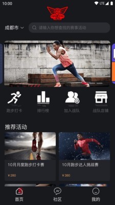 2.拥有跑步打卡、排行榜、加入战队、战队店铺等服务板块。