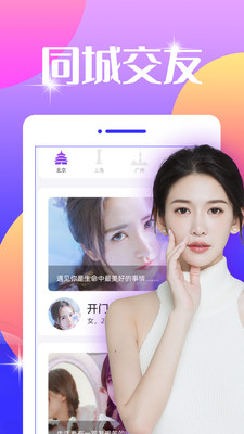 我们可以在这里进行同城交友,多种不同的交友模式可以为用户带来最新的交友体验,轻松在线进行社交互动。