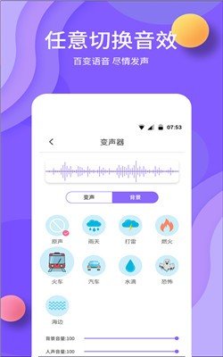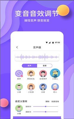 变声音效包含系统预定义的男声、女声、萝莉、老人、机器人等效果,还支持用户自定义切换各种变声效果,让你想变什么音可以自己随意调整