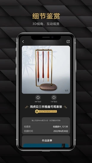 3、该APP通过3D展示方式提升用户体验,将通过海上文创Meta更好地传承海派文化、传递非物质文化价值。