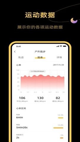 2.关于用户的睡眠质量、心率、运动步数以及轨迹和消耗的卡路里数据都能记录。