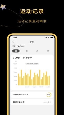 1.使用起来很简单,连接上智能手表即可,运动数据会实时的更新。