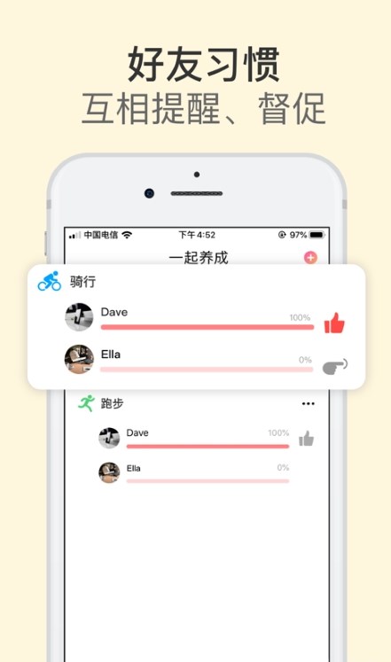 3.好友习惯监督,我们可以和好友一起进行互动的提醒和互动督促。