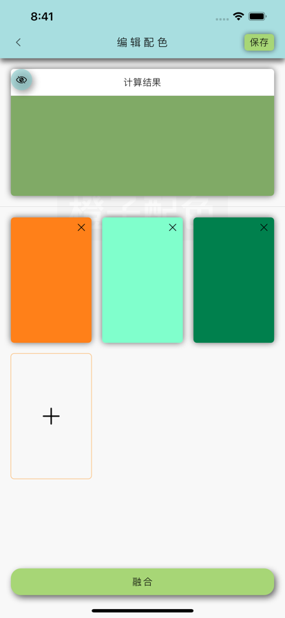 2、选择配色原后自动计算融合色,如果计算结果与实际结果有偏差,还可以手动调整。