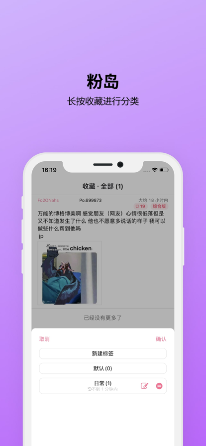 粉岛这是一款可以使用户在线进行轻松互动交流的手机社区,用户可以在这里认识更多有趣的灵魂,多种不同的交友互动模式可以为用户带来一些帮助,我们可以在这里分享自己的日常生活,吸引相同爱好的用户,并且可以结识更多的朋友进行交流,有机会的还可以进行线下约会哦。