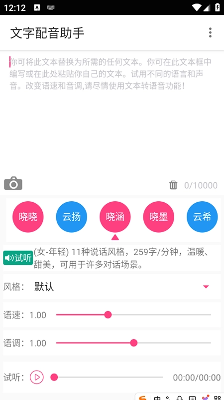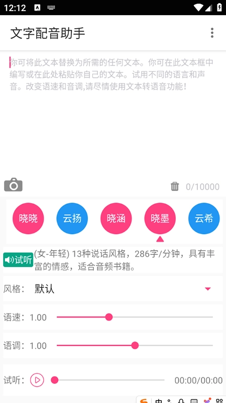 1.真人在线发声,多种不同的风格可以在线进行自由选择。
