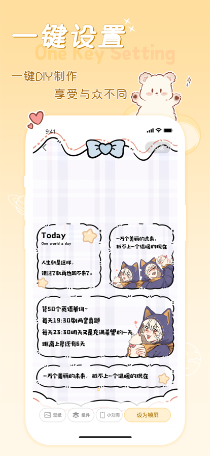 2、丰富的贴纸素材让你可以任意的选择,全面满足用户对手机桌面不同的DIY要求,很多不同风格的小组件在其中。
