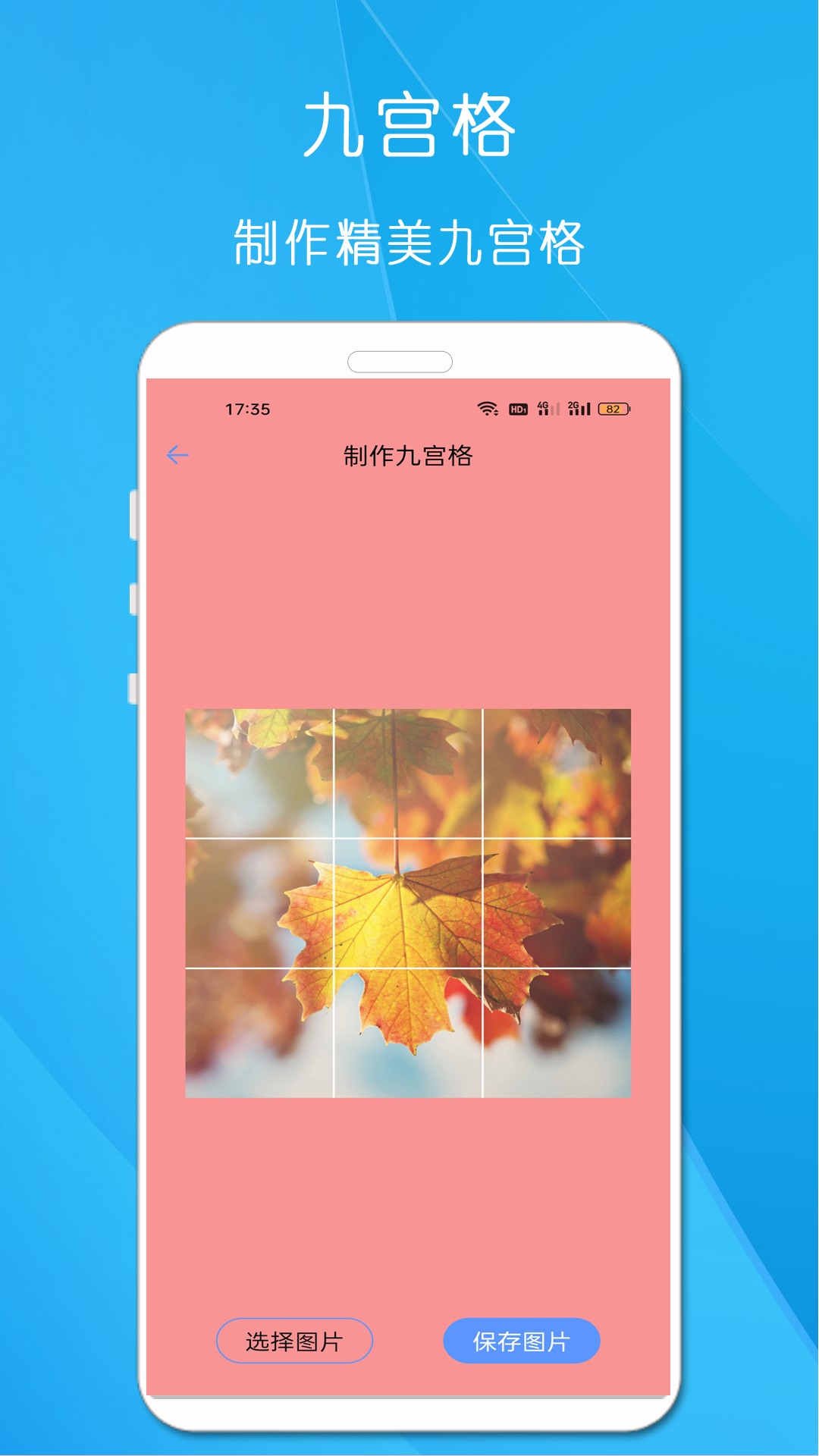 1、个性语录,切图拼图,九宫格等丰富的功能任你使用,操作方便,使用便捷,随时都可以开启;