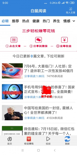 白鼠阅读app是一款能够阅读新闻咨询的同时轻松赚钱的手机软件,软件中具有大量不同种类的最新新闻资讯,用户在自由免费阅读的同时还可以赚钱零花钱,转发阅读单价最高可以达到1.6元,远远高于其他手赚平台,转发金额每达到一定标准还能获得额外赠送红包。