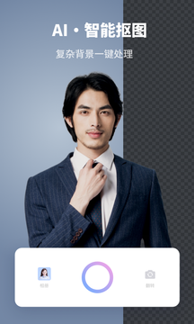 2.标准证件照相机可以在线进ai智能抠图,复杂背景可以一键切换。